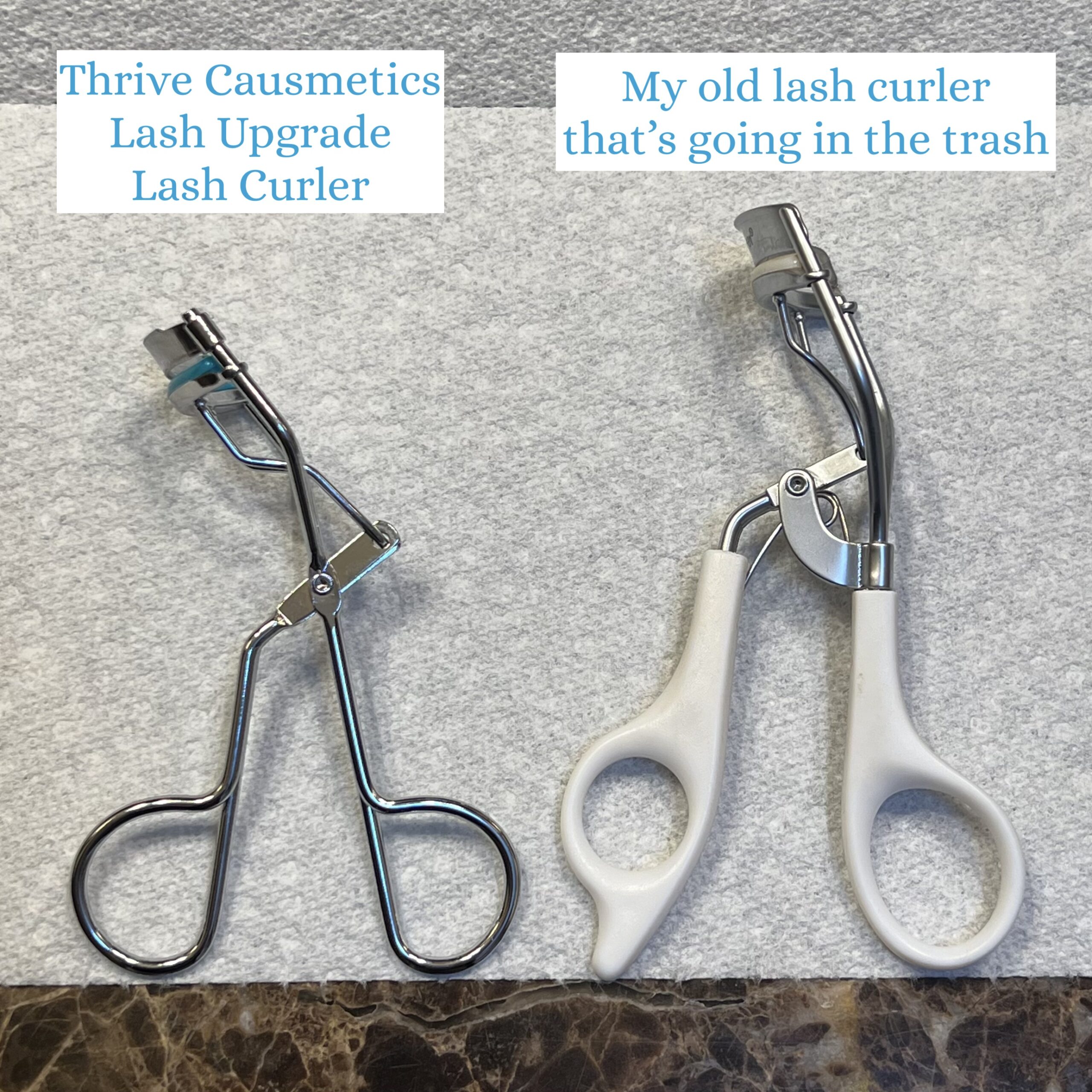 My lash obsession continues – I’m currently obsessed with my new lash curler, the Lash Upgrade Lash Curler™ from Thrive Causemetics. It is THE BEST lash curler I’ve ever used (and I’ve used plenty), it actually LIFTS and EXTENDS my eyelashes. The proof is in the pix…see my before and after, below. It looks like I’ve had a lash lift.